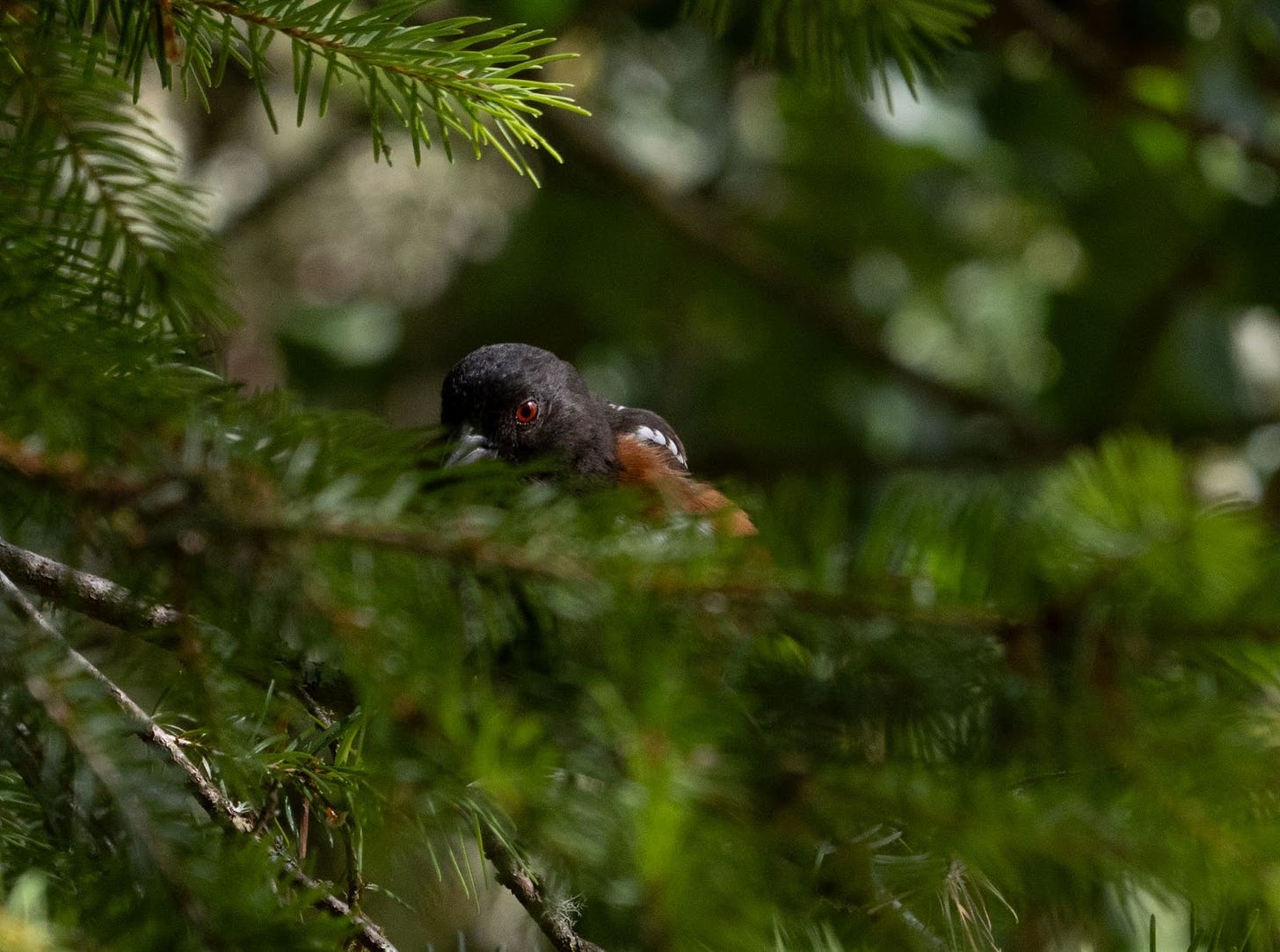 On our very first day in Oregon (August 2025) I was excited to spot a clan of Acorn Woodpeckers on a large tree* close to where our son and his family live. Six to ten of these unmistakable birds were buzzing around the tree which was pocked with several dozen quarter sized holes. This was the first time I had actually seen Acorn Woodpeckers but their reputation precedes them. They form nesting groups and each group typically sets up one or more cache trees known as 'graineries'. The birds drill hundreds (or thousands) of small holes in the tree and place an acorn in each hole. They guard this food store carefully with one bird always remaining at the cache tree while the others go around doing what Acorn Woodpeckers do. These birds are noisy and colorful and this approach to caching food is a remarkable display of cooperative behavior. This is a charismatic species.